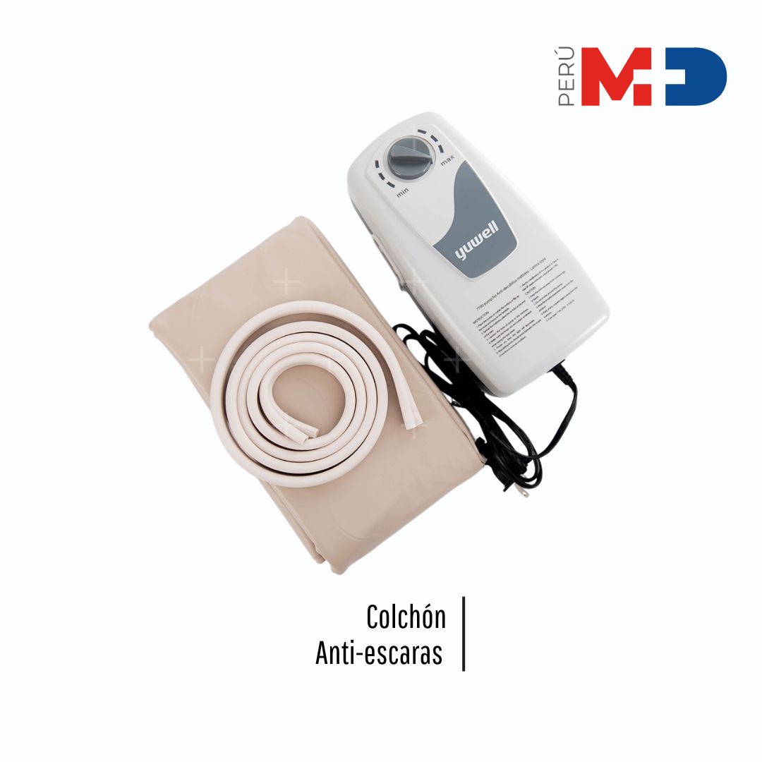 El colchón antiescaras modelo Lattice Style de Yuwell, está diseñado para la prevención y tratamiento de escaras mediante la reducción de presión continua. Cuenta con una estructura de celdas de aire que se inflan y desinflan alternativamente para mejorar la circulación y evitar la formación de úlceras por presión. Está hecho de material PVC impermeable y lavable, con medidas estándar de una plaza y suele incluir un motor silencioso y portátil para el ajuste manual de la presión. Es adecuado para pacientes de alto riesgo y soporta hasta 110-135 kg, ofreciendo comodidad y durabilidad para uso domiciliario o clínico.