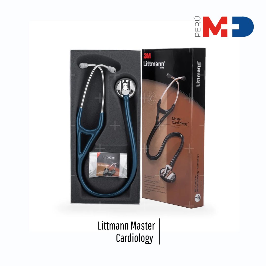 El estetoscopio Littmann Master Cardiology en color azul marino es una herramienta de alto rendimiento diseñada para profesionales de la salud que requieren máxima precisión en auscultación. Cuenta con un diafragma sintonizable, que permite alternar entre sonidos de baja y alta frecuencia simplemente ajustando la presión sobre la campana. Gracias a su tubo de doble lumen, ofrece excelente calidad de sonido al eliminar el ruido de roce. Su acero inoxidable produce una respuesta acústica superior, mientras que las olivas suaves con sellado “Snap-Tight” garantizan comodidad y un aislamiento óptimo.